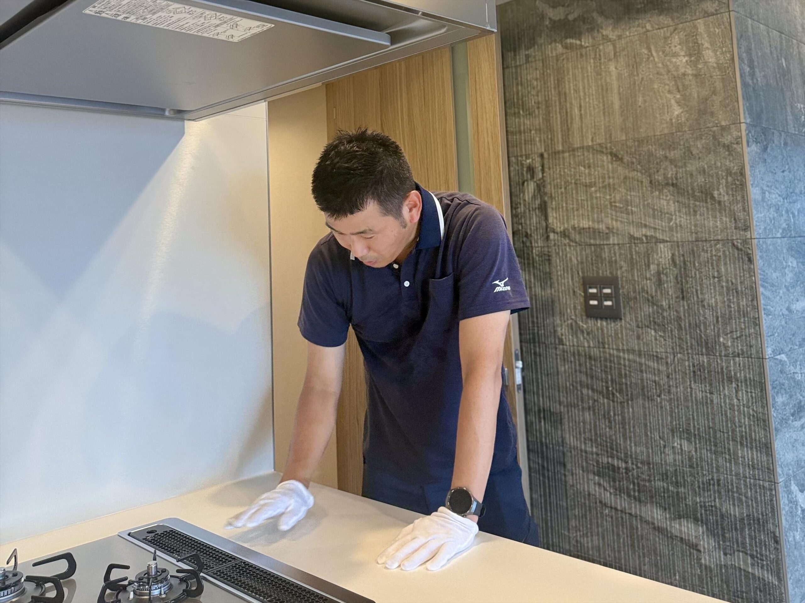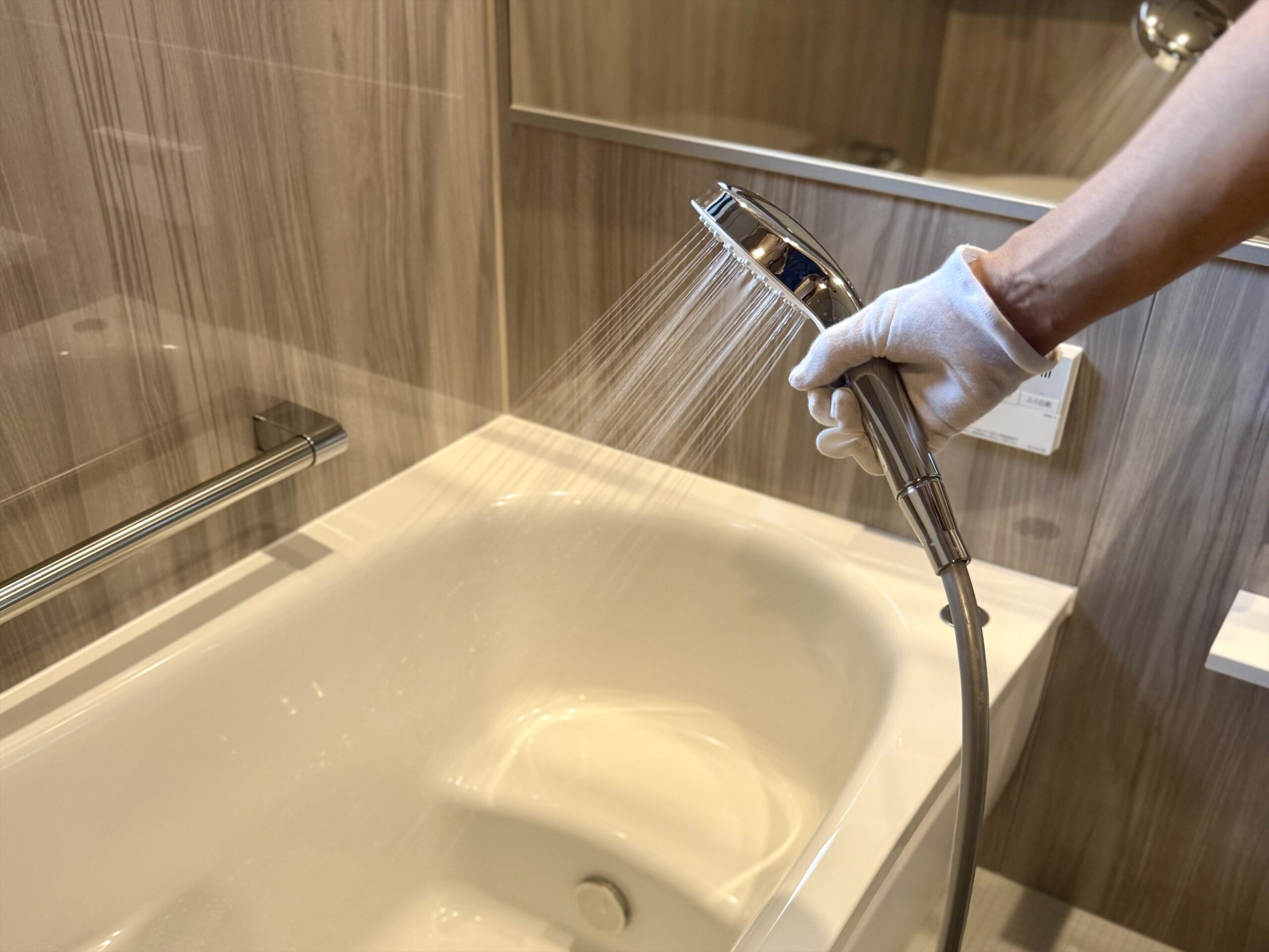 見えない部分だけではなくて、工事完成時の「竣工検査」では第3ステップとしてクロスやフローリングに傷などがないか、目に見えるところもしっかり点検しています。また、お風呂・洗面・洗濯機の水を同時に流して排水能力を試す「3点同時排水試験」など、入居後のリアルな生活シーンを想定した数十項目に及ぶ検査を実施しています。