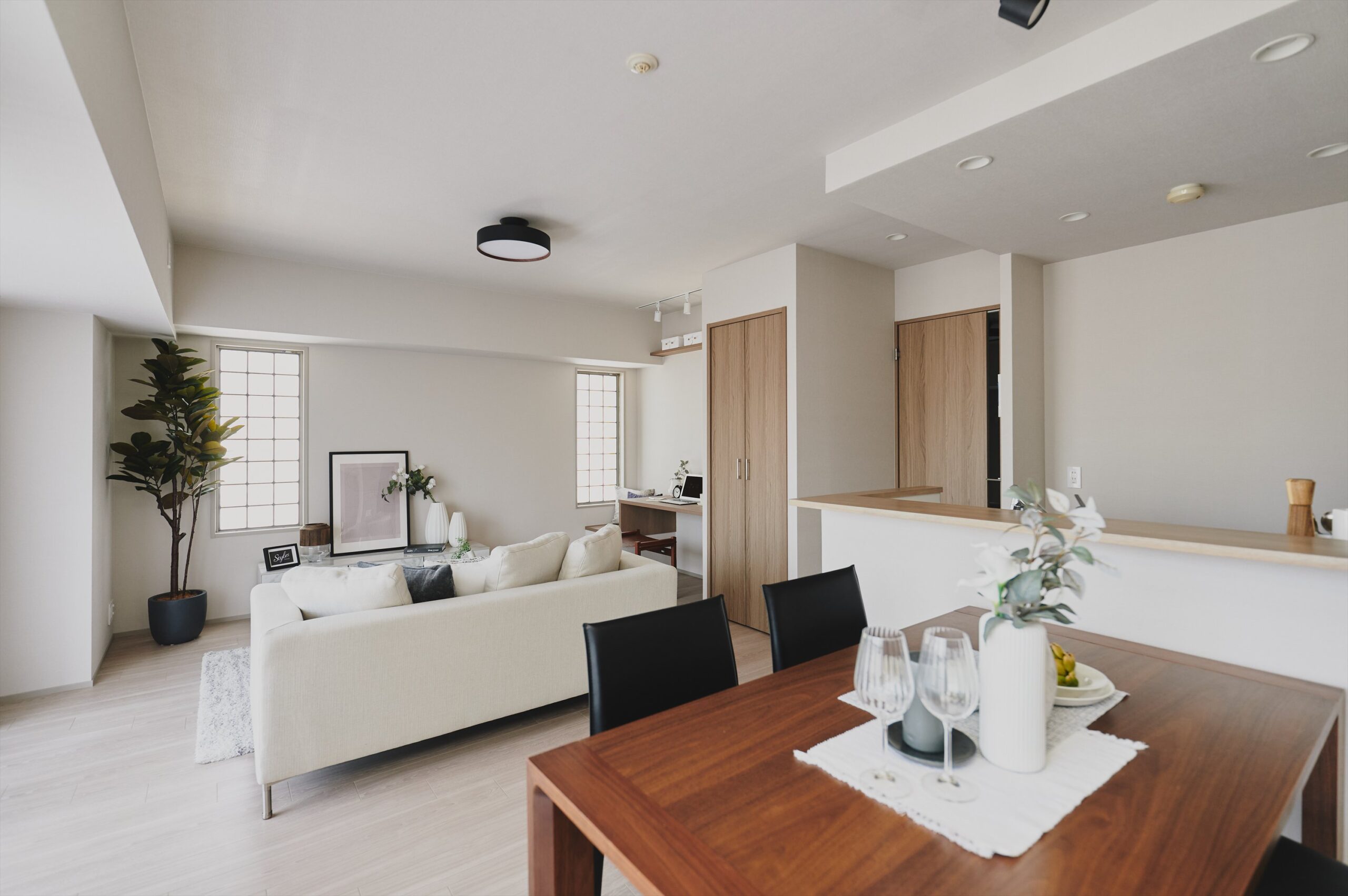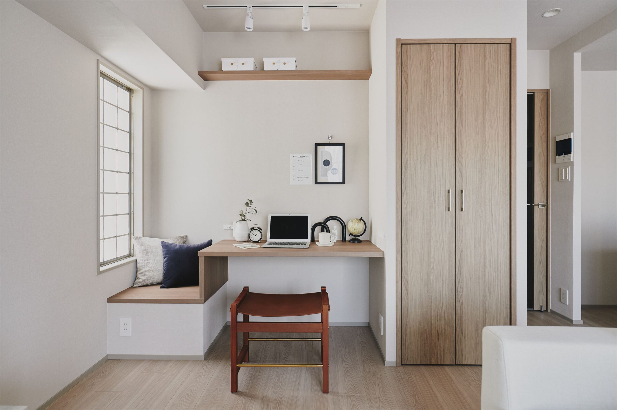 家族が自然と集まるLDKを中心に、暮らしを整えやすく日常の動きが散らかりにくいよう工夫された空間です。オープンキッチンが空間に一体感を生み、料理をしながらでもリビングの様子が見渡せます。さらにLDKにはスタディスペースを確保。リモートワークやお子様の宿題をする場所として、趣味に没頭する場所として大きな魅力です。