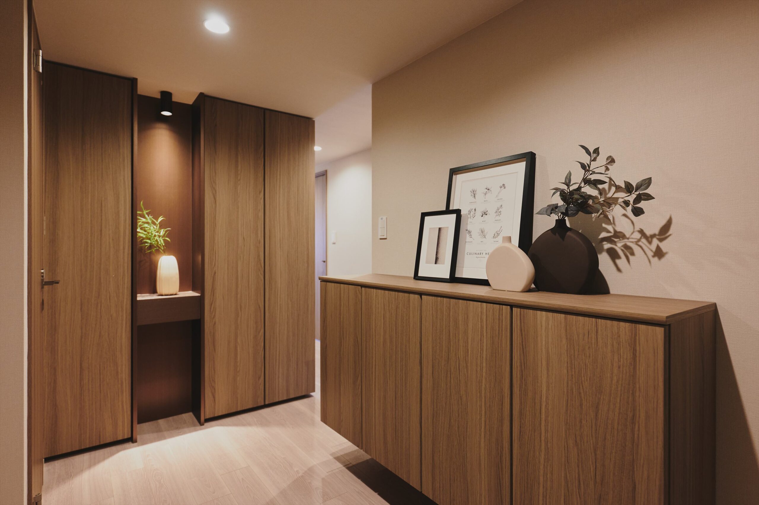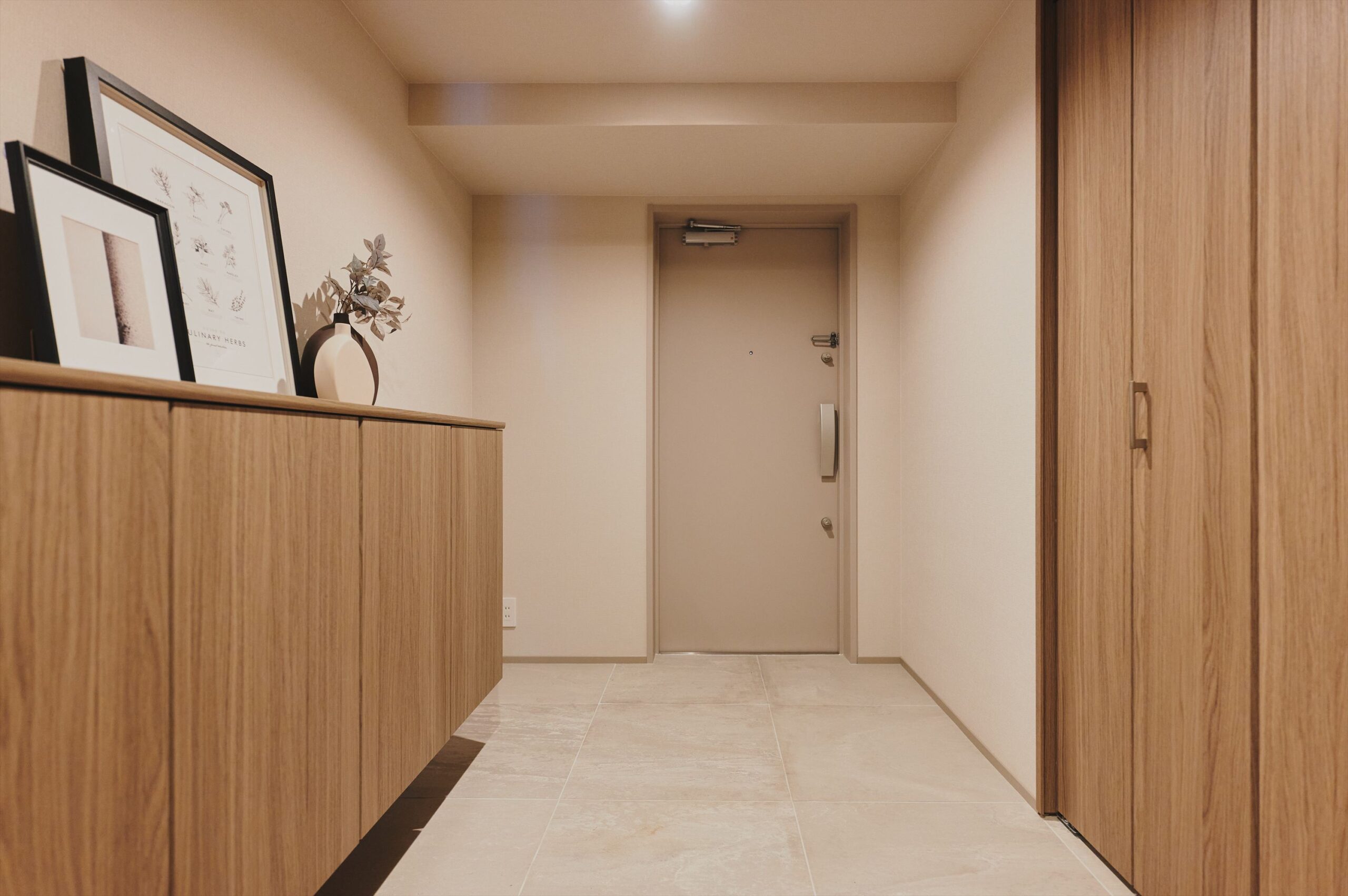 生活感が出やすい荷物は、居室に持ち込む前にさっと収めたいところ。廊下には収納スペースを備えており、日用品のストックや掃除道具、季節の小物などをまとめて管理しやすいのもポイントです。LDKをすっきり保ちやすく、家族が過ごす時間の心地よさを支えます。