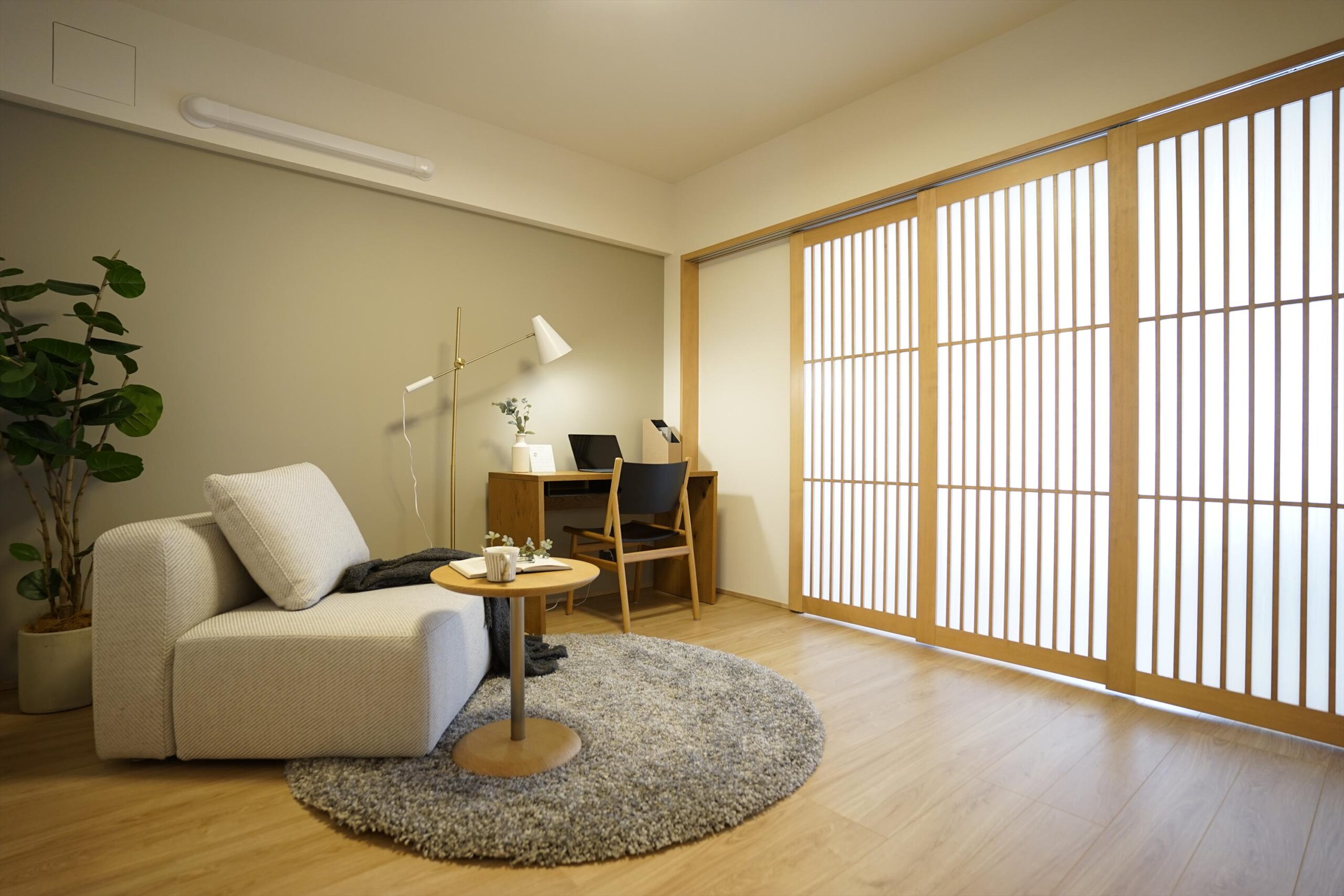 また、住戸内の扉は可能な限り引戸を採用し、出入りのしやすさに配慮。日々の動作が滞りにくく、将来を見据えた住まい方にもなじみます。和の要素やフロアタイルがアクセントを加え、南向きの明るさと閑静な御影の街並みを取り込む眺めが、室内の落ち着きを支えます。