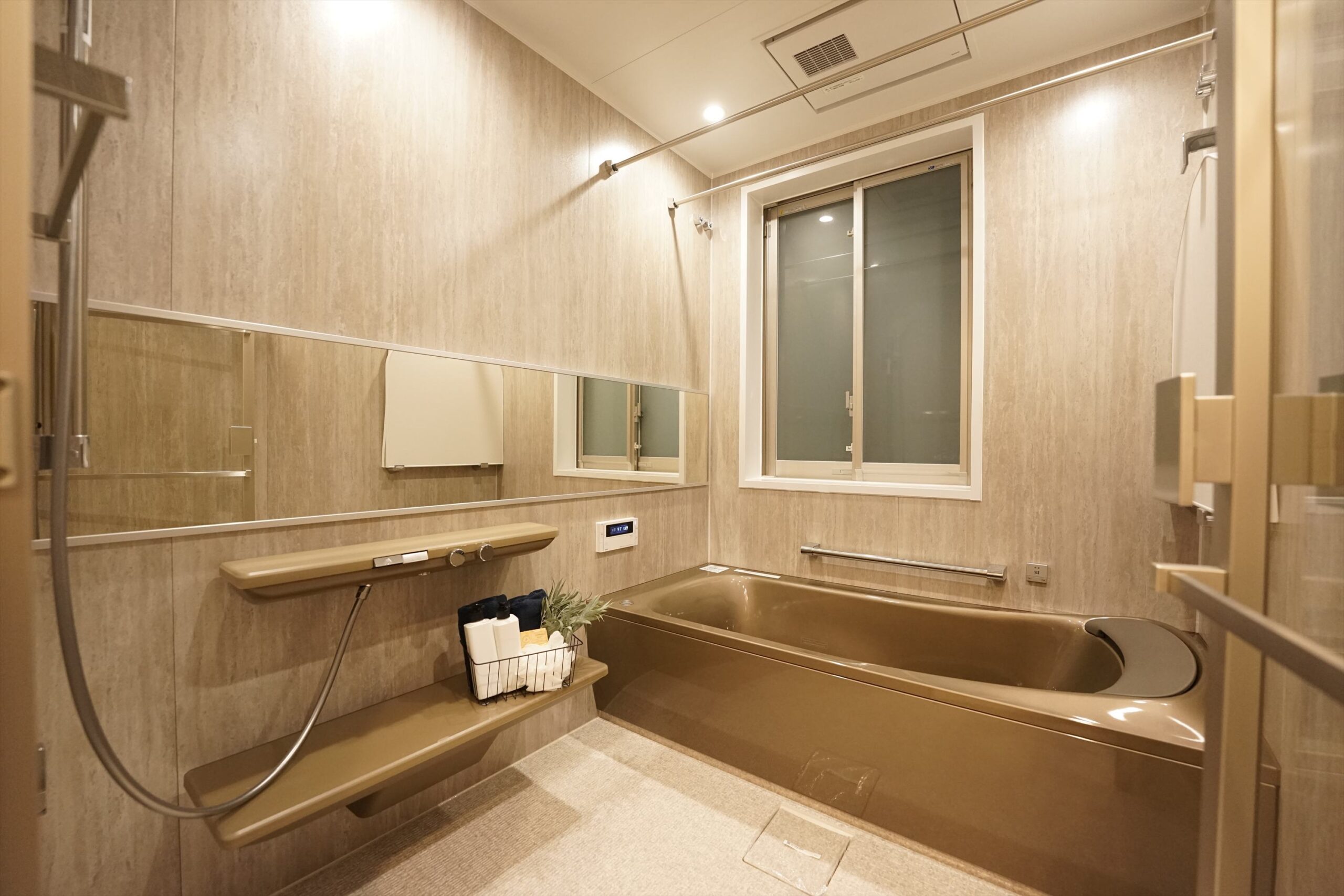 やわらかな湯に身をゆだねれば、心に安らぎが広がっていく、機能的で美しいバスルーム。整えられた温度、磨かれた清潔感、そして細部に宿るやさしい気遣いで、 “満たされる時間”を過ごすことができます。