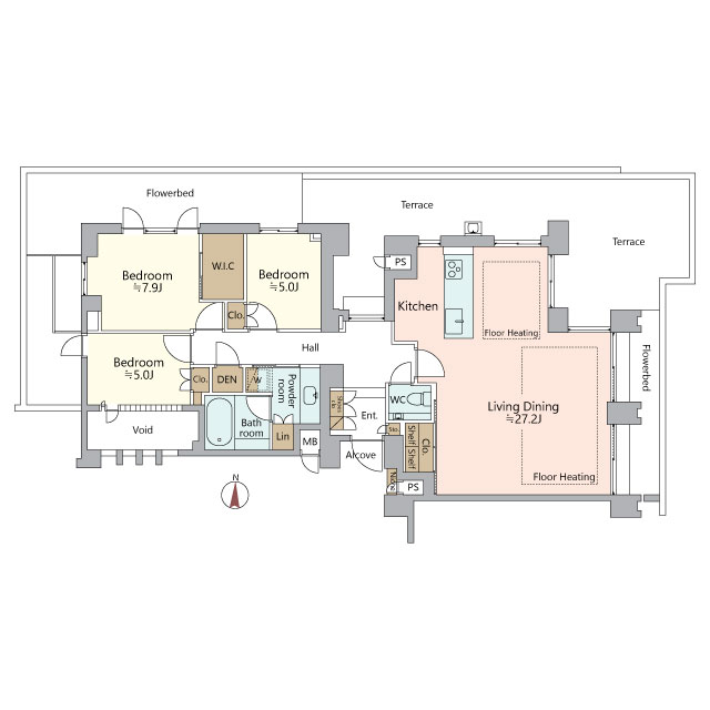 - テラス面積:76.42㎡ アルコーブ面積:1.94㎡