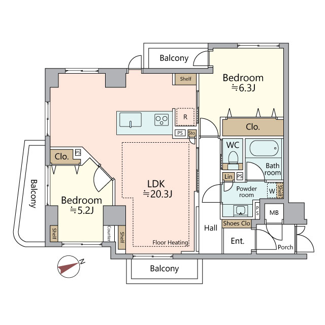 - バルコニー面積:9.35㎡ 専用ポーチ面積:2.10㎡