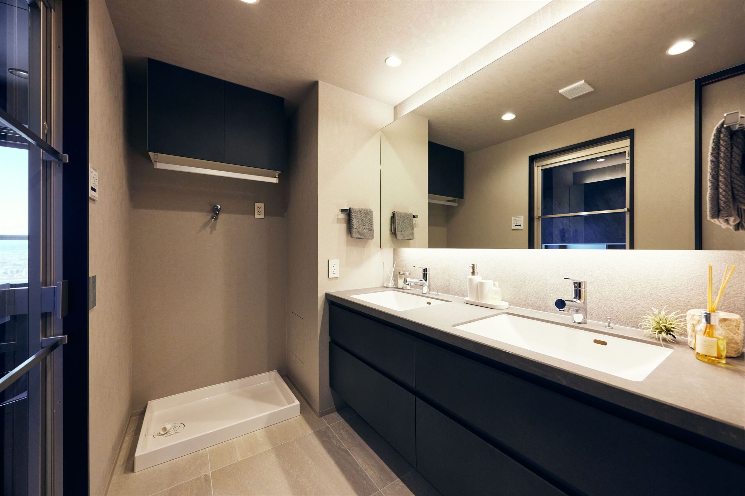 さらに、"BOSCH"の食洗器を備え、まとめて洗いやすい容量感が日々の後片付けをスマートにサポート。またIHクッキングヒーターを採用し、意匠の美しさを損なわず、すっきりとしたキッチン空間を保ちやすいのも魅力です。調理から後片付けまでの流れが滑らかになることで、忙しい日常のなかにも、ゆとりある時間が生まれていきます。41階の窓から広がる、刻々と移ろう都市の表情にやわらかい照明計画が重なり、夜には陰影が生まれ、都心の一日を静かに切り替える背景になります。