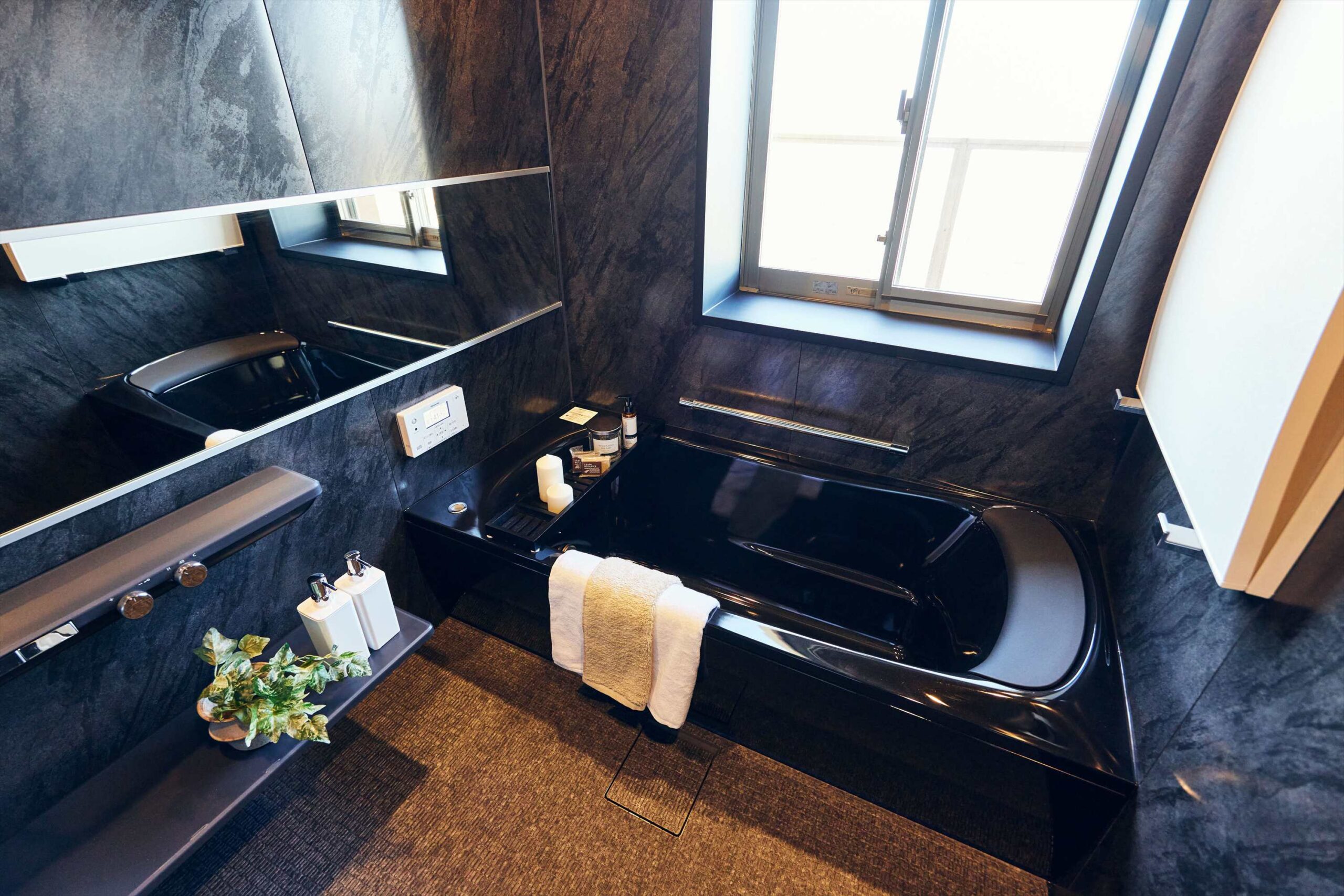 機能性とデザイン性を兼ね備えた1620サイズのバスルーム。お手入れのしやすさにも配慮され、日々の負担を抑えながら、清潔で快適な空間を保ちやすい設計です。さらに、TOTOの「シンラ」シリーズに搭載される「楽湯」を採用。肩まわりをやさしく温める機能が、忙しい一日の終わりに深いリラックス感をもたらします。上質なくつろぎを追求した、こだわりのバスタイムをお楽しみいただけます。