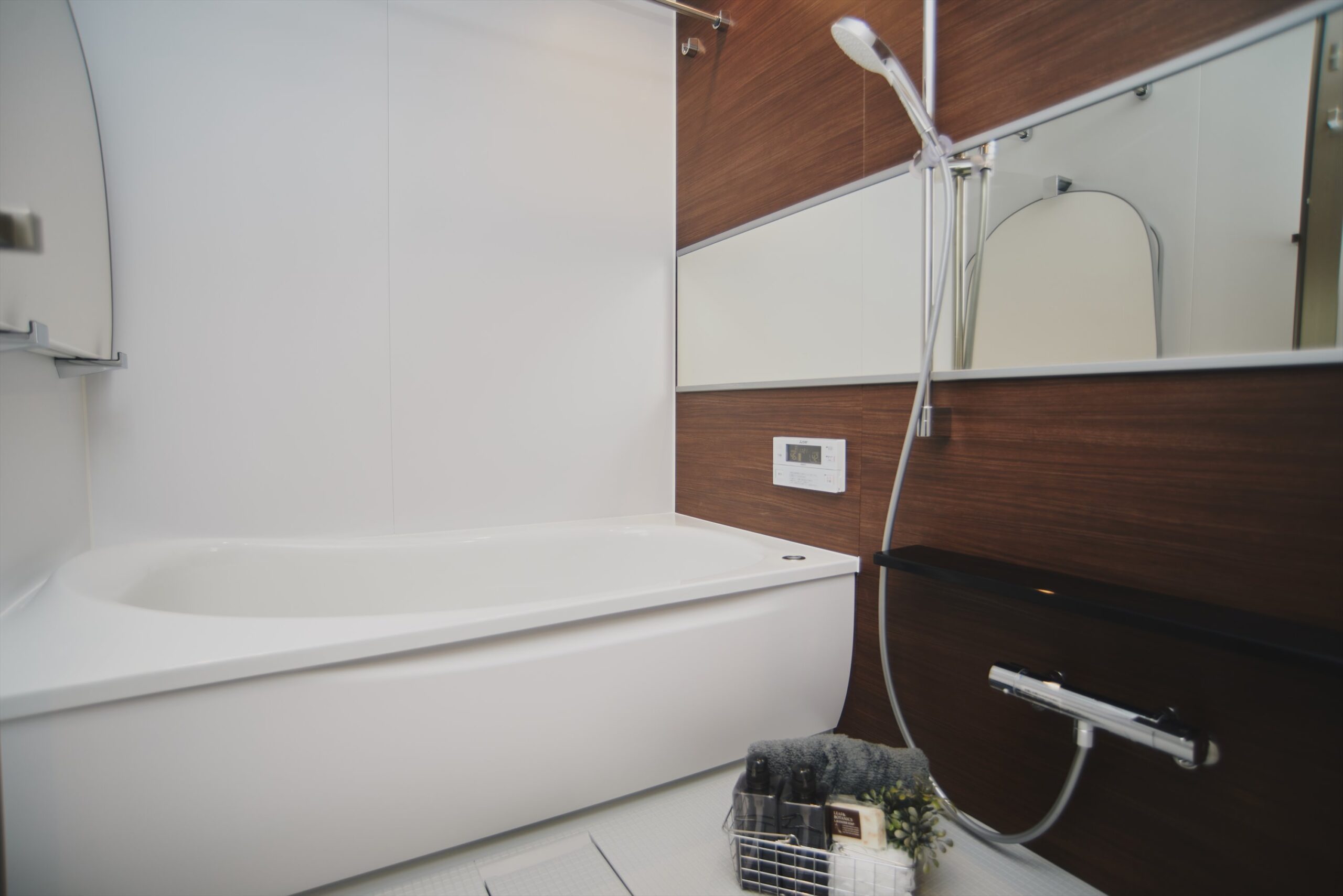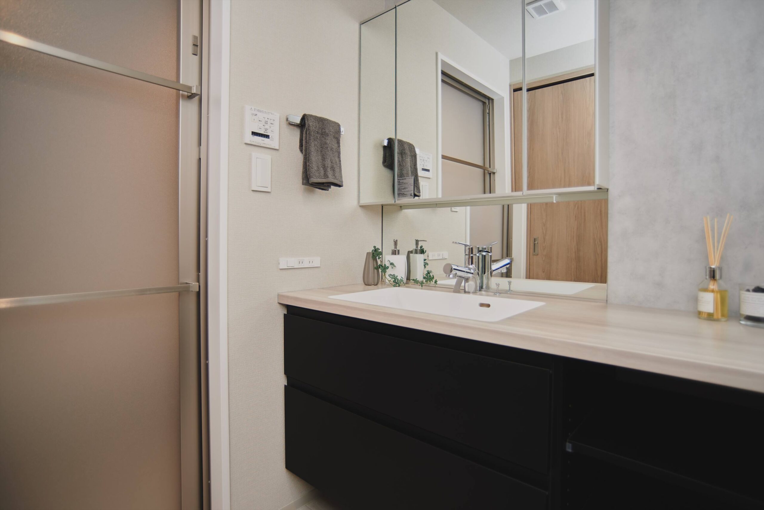 システムキッチン、ユニットバス、洗面化粧台、シャワートイレ、トイレ手洗い、など水まわり設備は一新。毎日必ず使う場所が新しいことは、見た目もさることながら清掃性が良く清潔を保つことができます。さらに、ゆとりを持たせたの洗面化粧台は洗面ボウルを片側に寄せた偏心ボウルを採用しており、朝は並んで支度ができ、入浴時の衣類置きスペースとしても便利です。