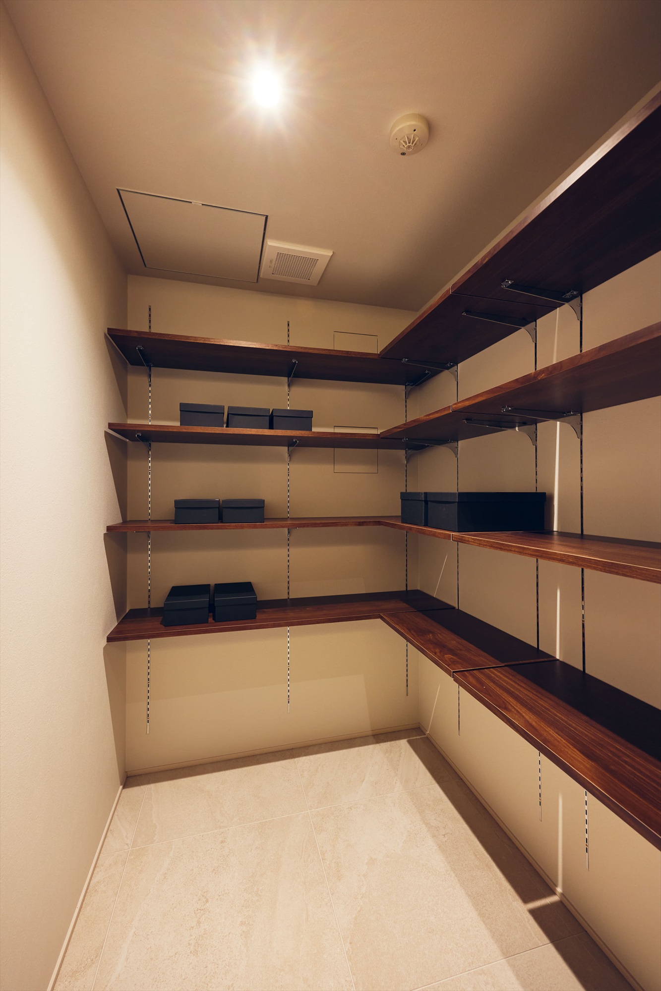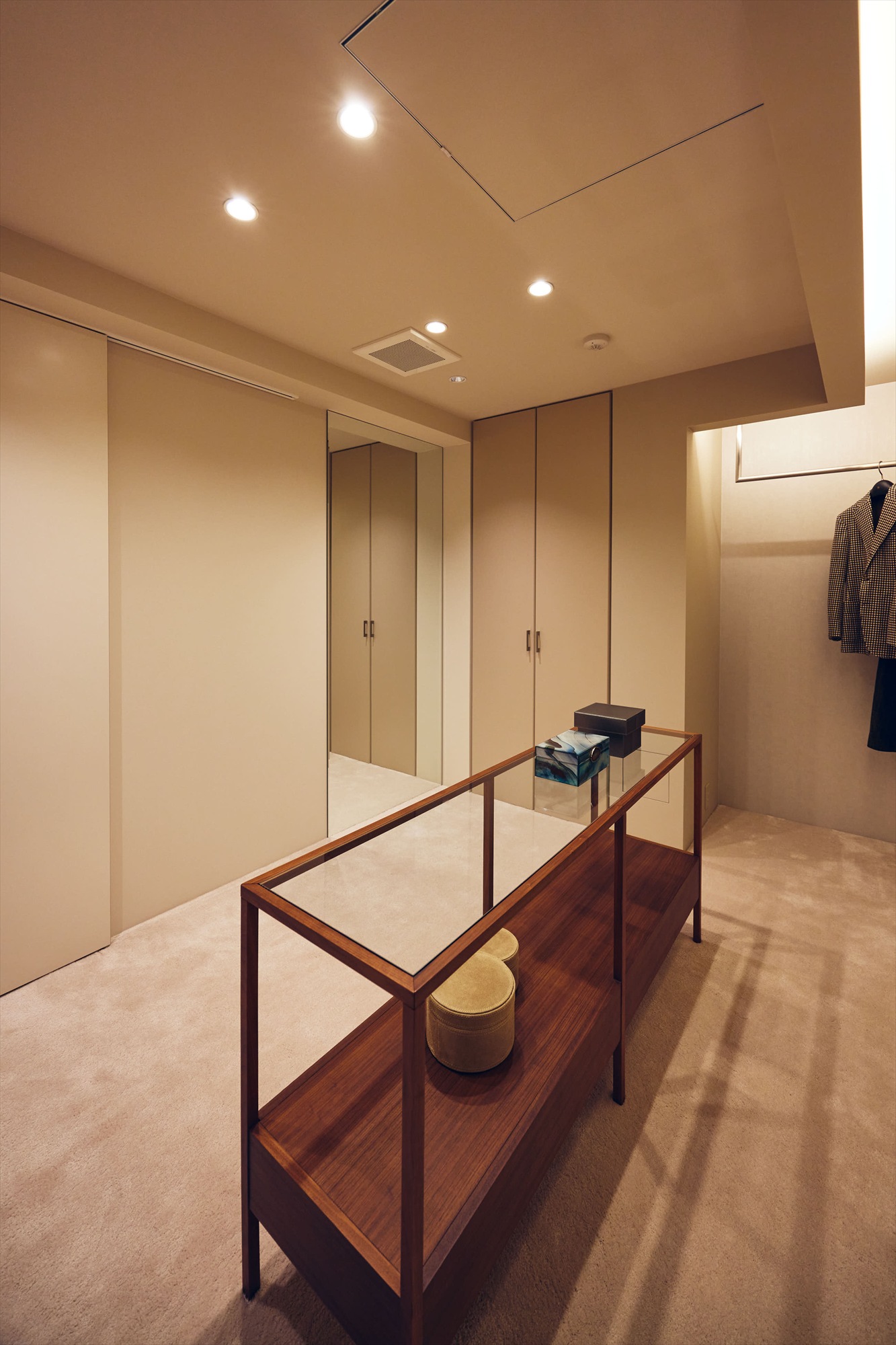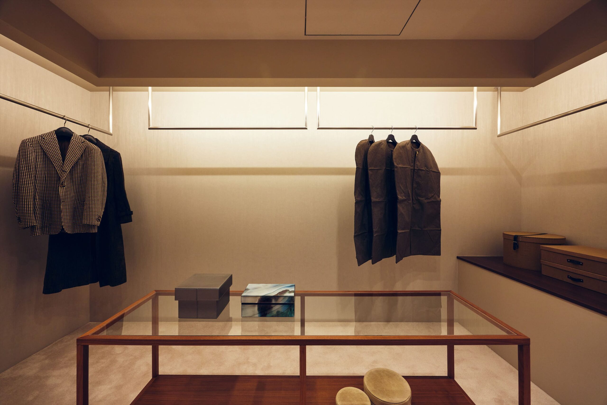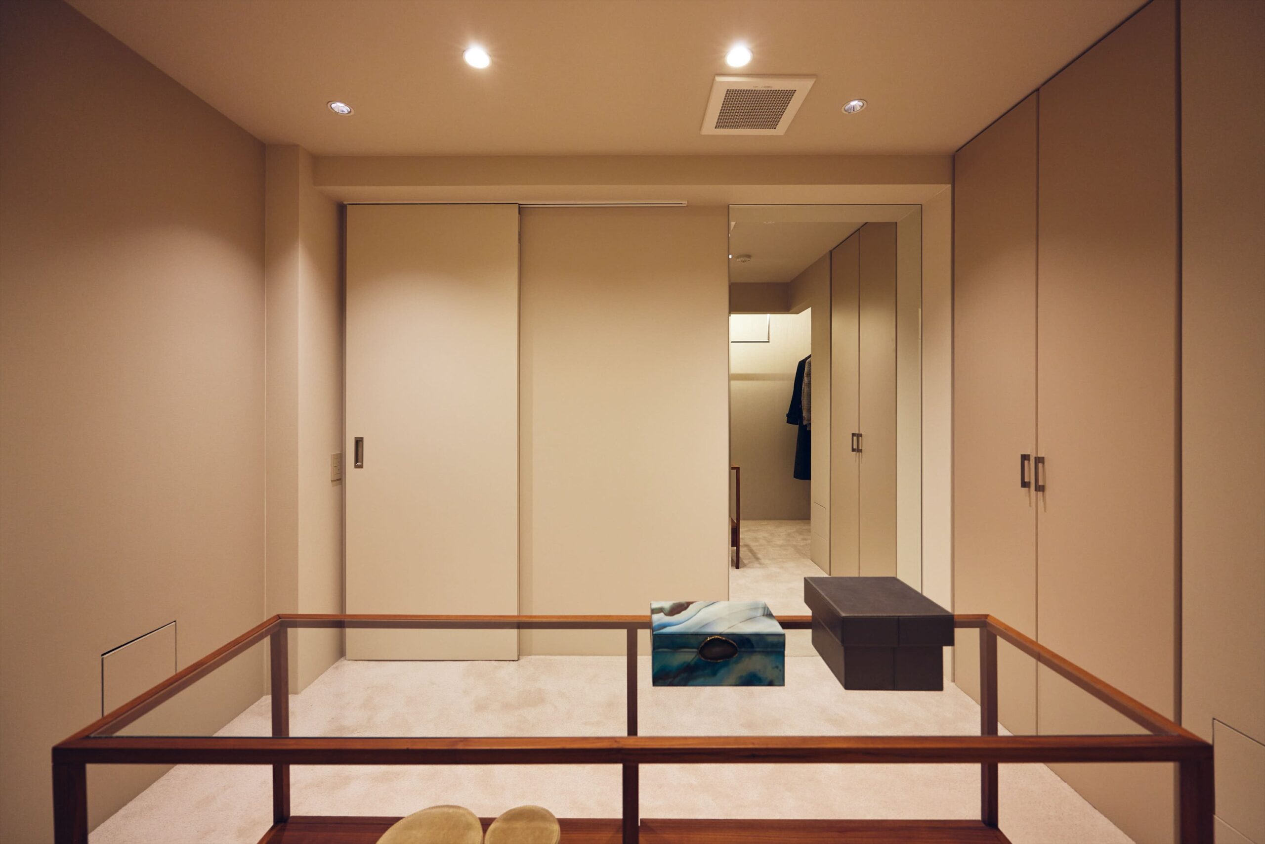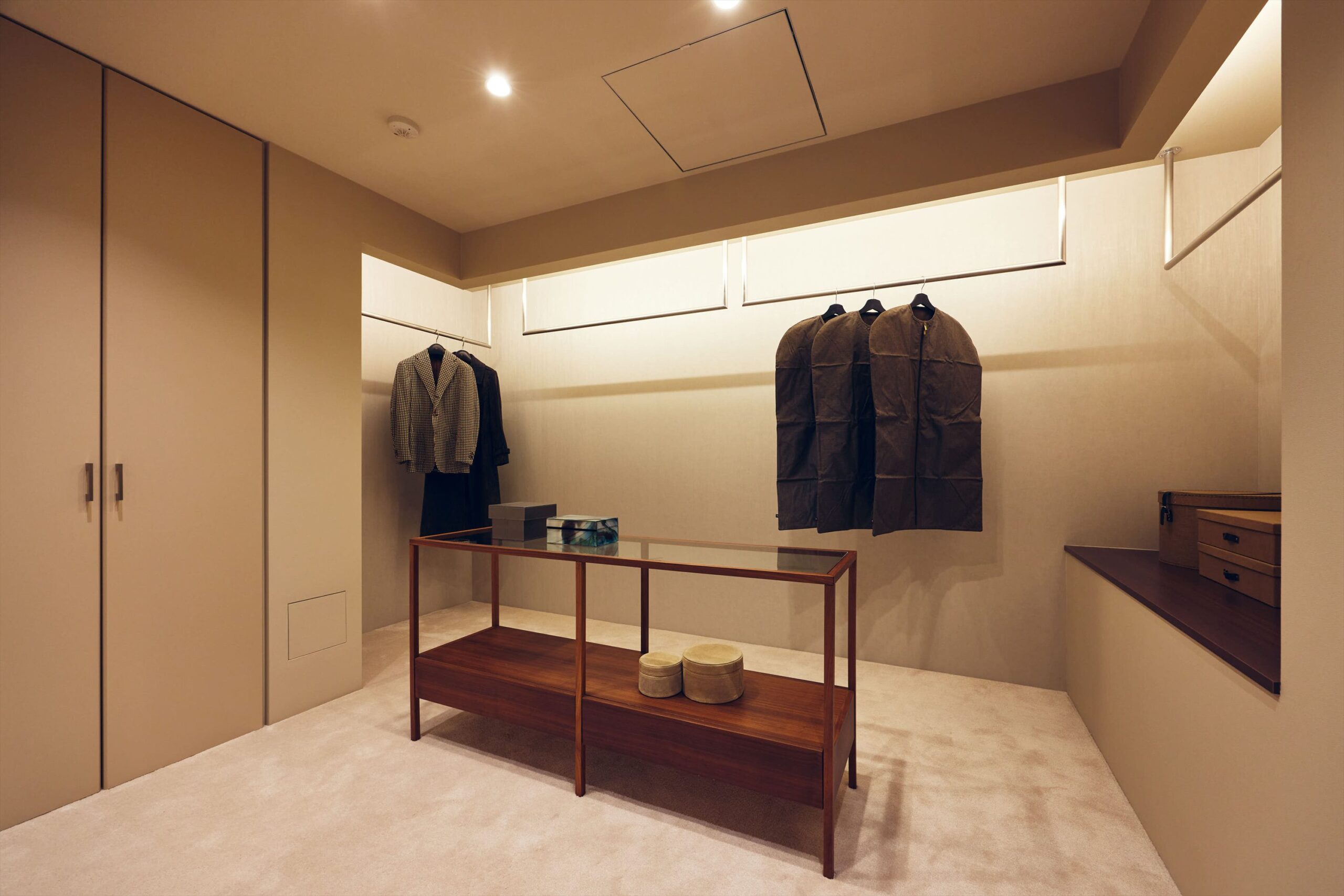 WICはあえて棚を細かくつくり込みすぎず、衣類や持ち物に合わせて柔軟に使いこなせる設えとしています。ここで装いを整え、一日の終わりにそれを静かにほどいていく時間までもが、私的な余韻に満ちた、贅沢なひとときへと昇華されます。