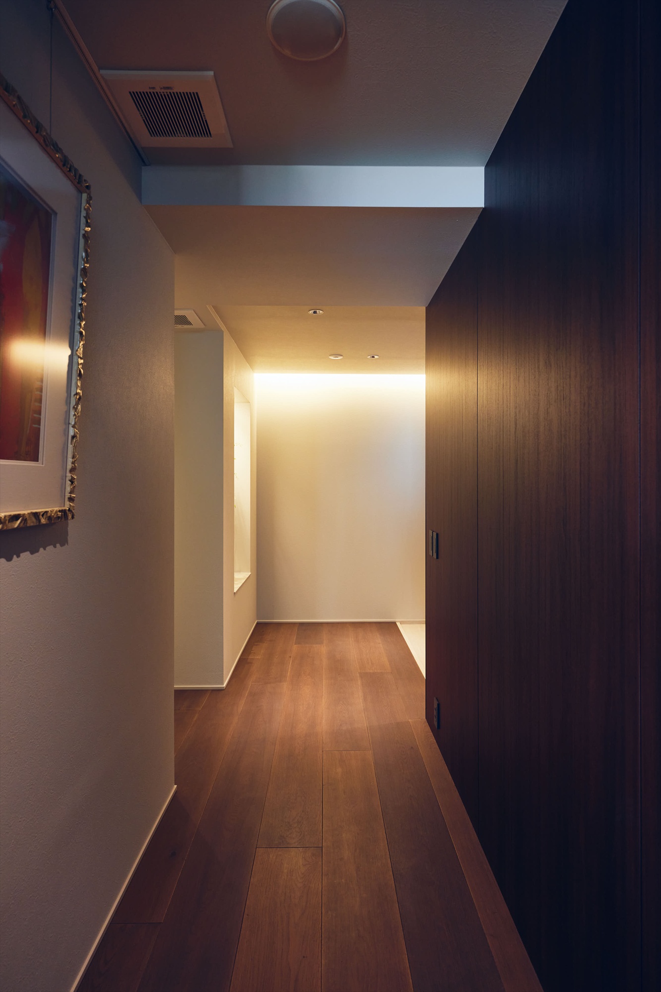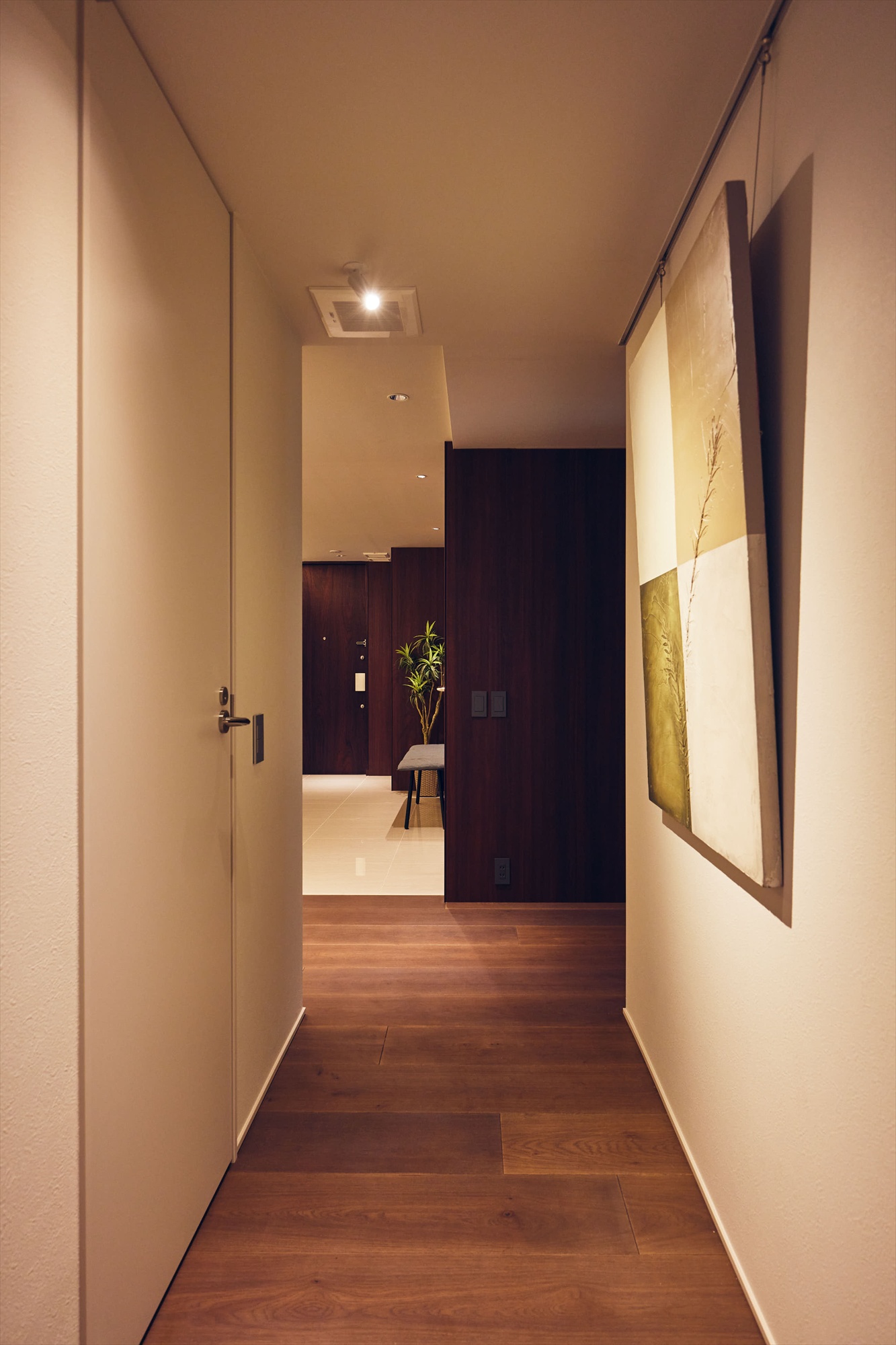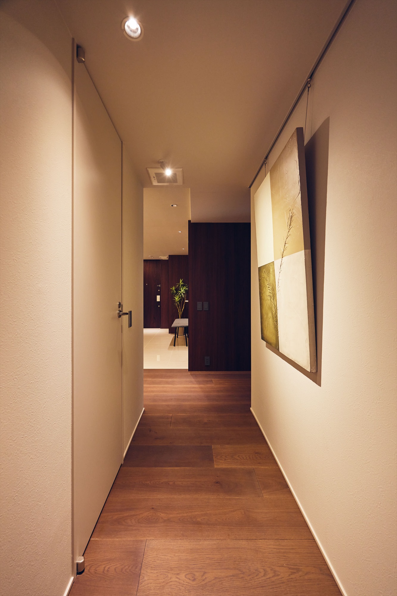 廊下にはピクチャーレールを備え、アートを愉しむための環境を整えました。そこに添えられた照明が作品を美しく引き立て、住まい全体に静かな品格を添えています。さらに本物件では、阪急阪神グループが運営する「ARTELIER」の体験サービスを導入。暮らしの中に自然にアートを取り入れていただけるよう、お引渡し後1年間、アートレンタルをご体験いただけるサービスをご用意しています。お好みのテイストに合わせてARTLIERのスタッフが作品を選定し、半年後には別の作品をお届けします。アートを所有する前に、そのある暮らしを実際に味わえることも、この住まいならではの豊かさです。ARTELIERサービスのご紹介はこちら